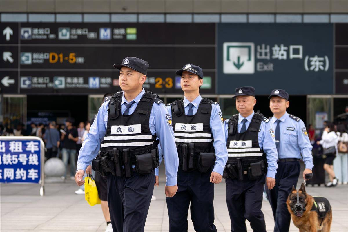 洪山公安分局在武汉火车站等重点区域开展联合巡逻防范。图片提供:通讯员