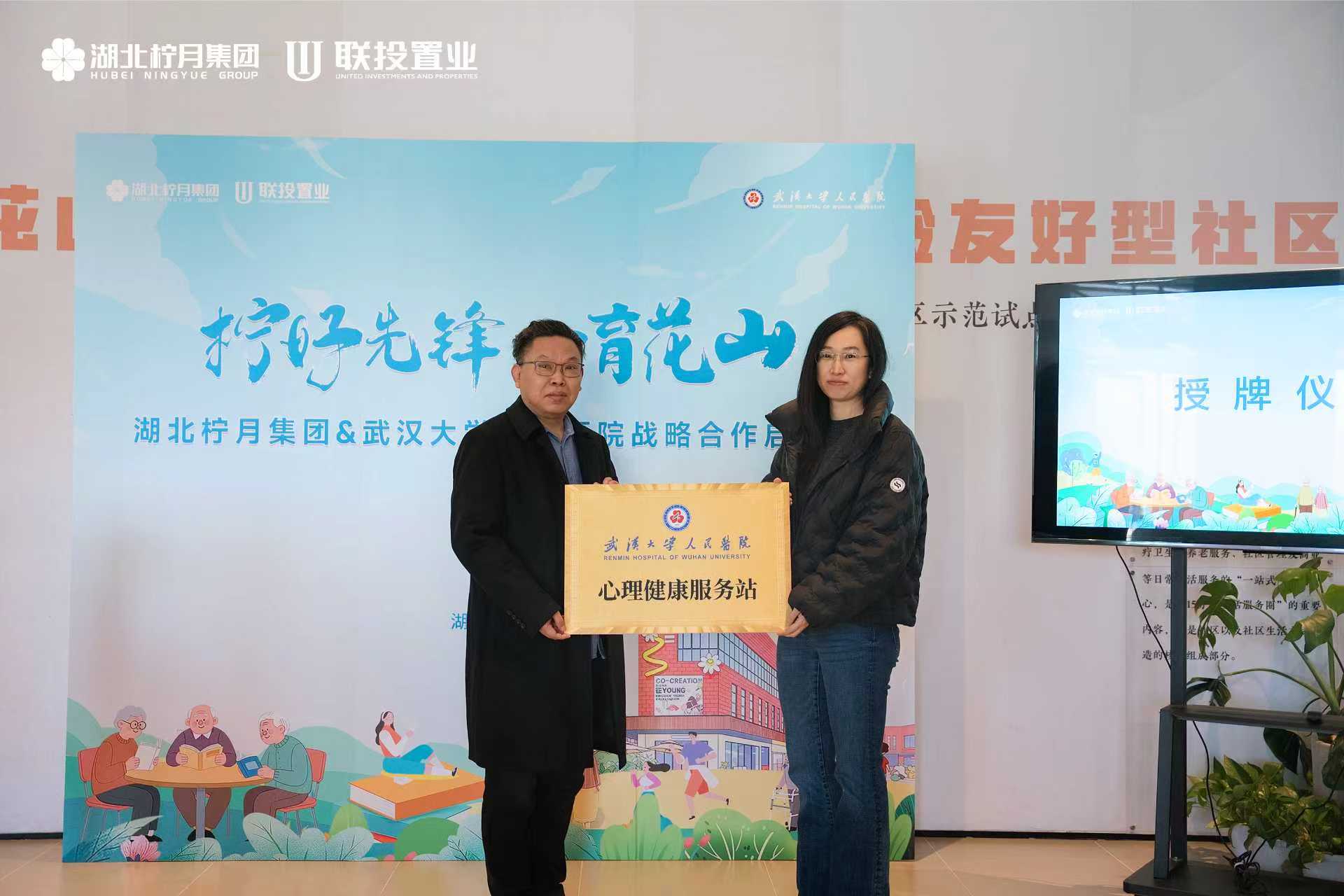 武汉大学人民医院外联部陈波副主任与湖北宁岳集团副总裁潘英共同签署了《精神卫生服务战略合作协议》。陈振华 武汉大学人民医院主任医师、副教授武汉大学人民医院心理健康服务站正式授牌,标志着专业心理健康服务正式走进社区。同时,还开通了心理健康咨询热线(027-65527588),让居民在家门口就能得到专业的心理支持。